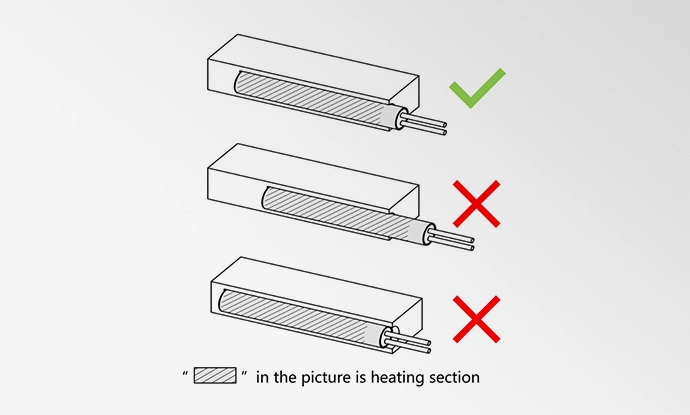 Ensure that the installation location is well ventilated that the heat generated by the heater can be quickly transferred. Cartridge heater with a high surface load used in a poorly ventilated environment may overheat and burn out the heater.
