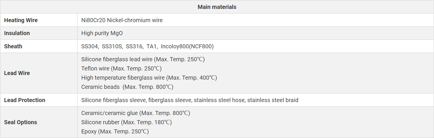 Select a sheath material that suits the liquid type, particularly when liquid is corrosive that corrosion resistant material is required. It’s important to design and make the surface load of the cartridge heater to match the medium of the heating liquid. For more insight, refer to the article on our website: "How to choose the heater sheath material?”